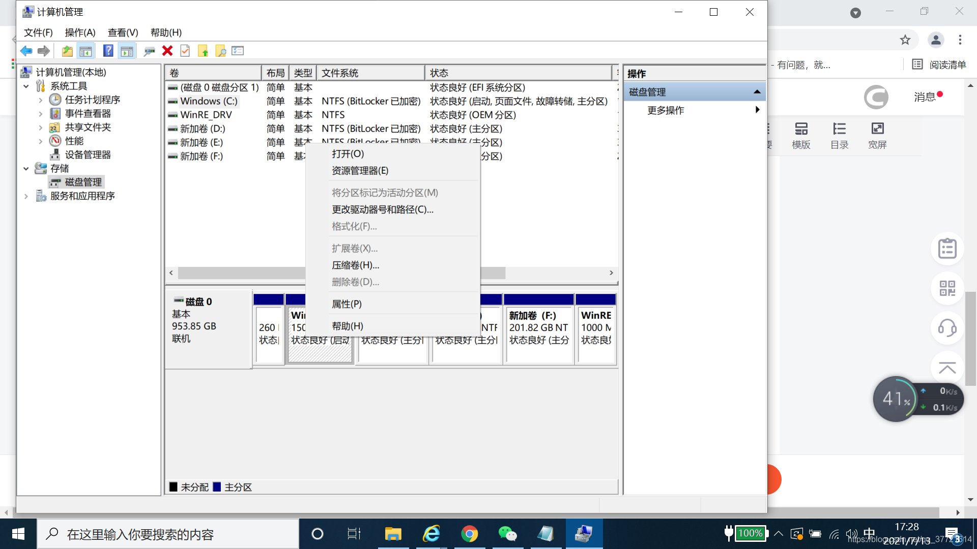 3、 Right click the selectable area >>" Compress the volume ">> Enter the desired space size , Then point compression
