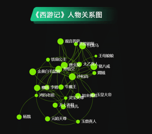 下图将人物关系图换一种呈现方式,换成环形关系图,各人物之间的关系更好理解,如孙悟空的人物关系。