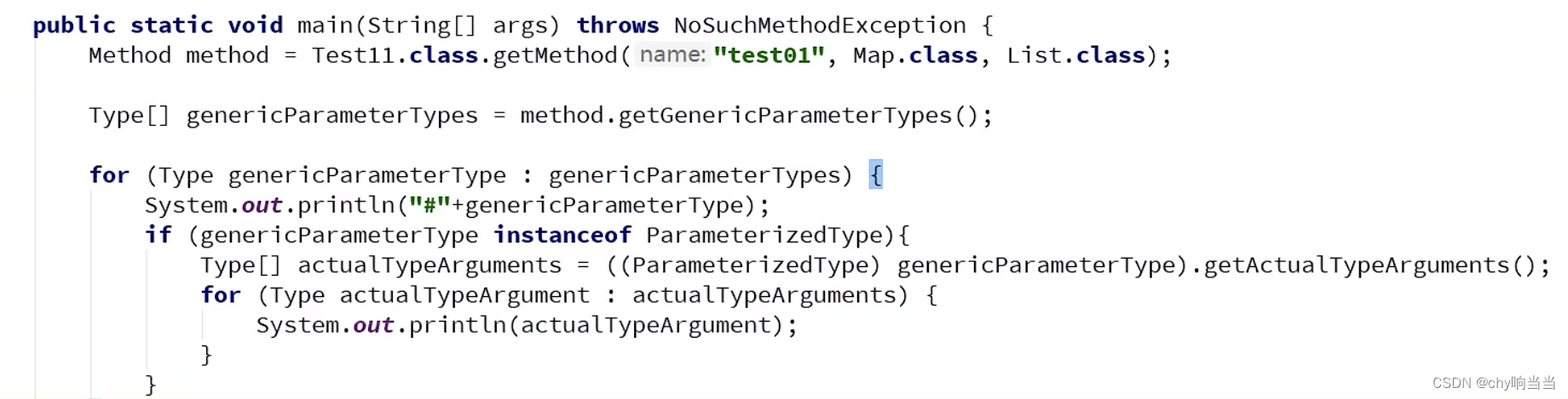 },然后这里.class获得class对象然后getMethod获取方法,再用Type【】泛型接受参数类型