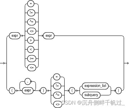 如果使用此条件的上部形式(在运算符的左侧有单个表达式),则必须使用expression_list的上部形式。如果使用此条件的较低形式(在运算符的左侧有多个表达式),则必须使用expression_list的较低形式,并且每个expression_list中的表达式必须在数字和数据类型上与运算符左侧的表达式相匹配。如果指定了子查询,则子查询返回的值必须在数字和数据类型上匹配