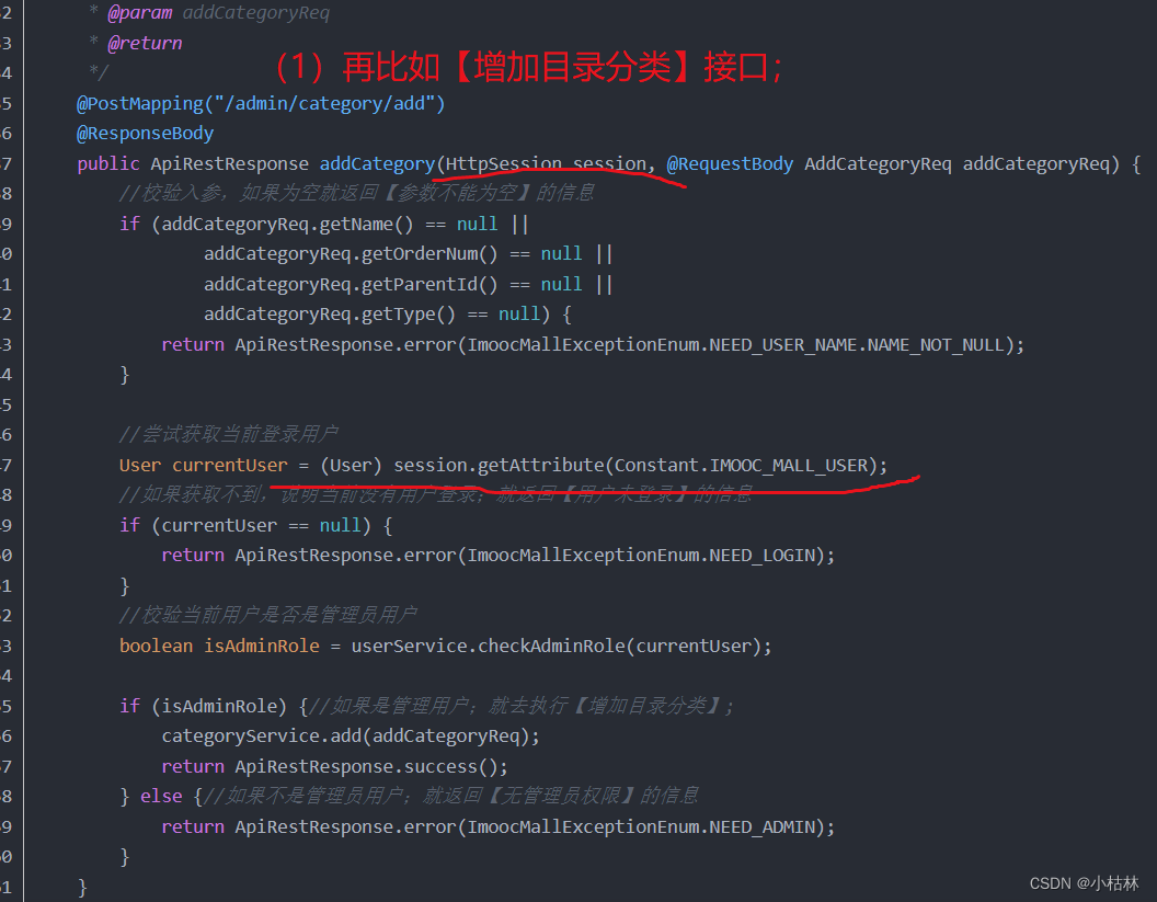 (2) then , In other interfaces that require user login , from session Get user information in the object ;;; If you can get , Everything goes smoothly ;;; If not , Throw an exception ;