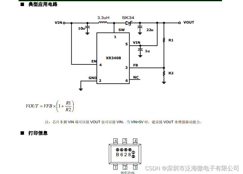 ■ 产品概述 XR3408 是一款微小型、高效率、升压型 DC/DC 调整器。 电路由电流模 PWM 控制环路,误差放大器,斜波补偿电路, 比较器和功率开关等模块组成。该芯片可在较宽负载范围内 高效稳定的工作,内置一个 4A 的功率开关和软启动保护电 路。高达 93%的转换效率能够高效的延长电池寿命。可以通 过调整两个外加电阻来设定输出电压。 ■ 用途 便携式移动设备 无线通信设备 电池后备电源 ■ 产品特点 效率高达 92% 输出电压可升到 28V 输入电压范围 2-24V 1.2MHz 的固定开关频率 自动 PWM/PFM 切换模式 功率通路支持短路保护 ■ 封装 SOT23-6L ■ 订购信息 XR3408 ①②