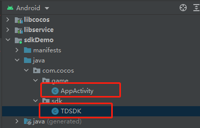 see /native/engine/android/app/com/cocos/game, You can see that there is AppActitivy.java It is found that the above is the familiar Android project directory structure ,