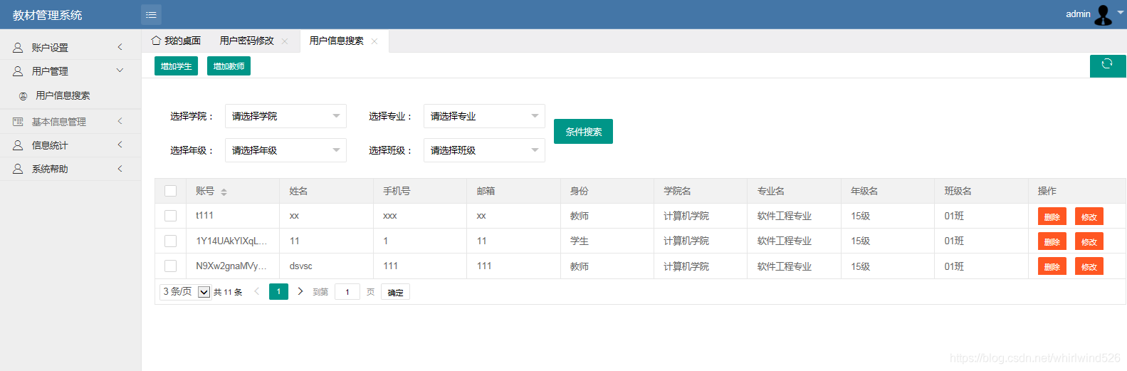 管理员可以增删改查教材、教材商、入库教材、用户(用户包括学生和教师)可以对教材商、教材进行excel的导入导出操作。