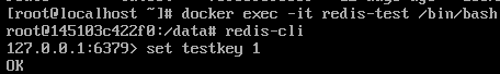After the connection is successful, you can see that it was just in the container Use Redis-cli Test data writing