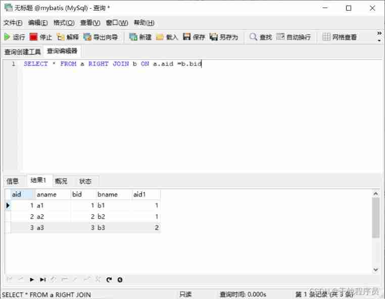 RIGHT JOIN The right connection , Subject to the right table .( With b The table shall prevail ,a Table without is automatically empty )