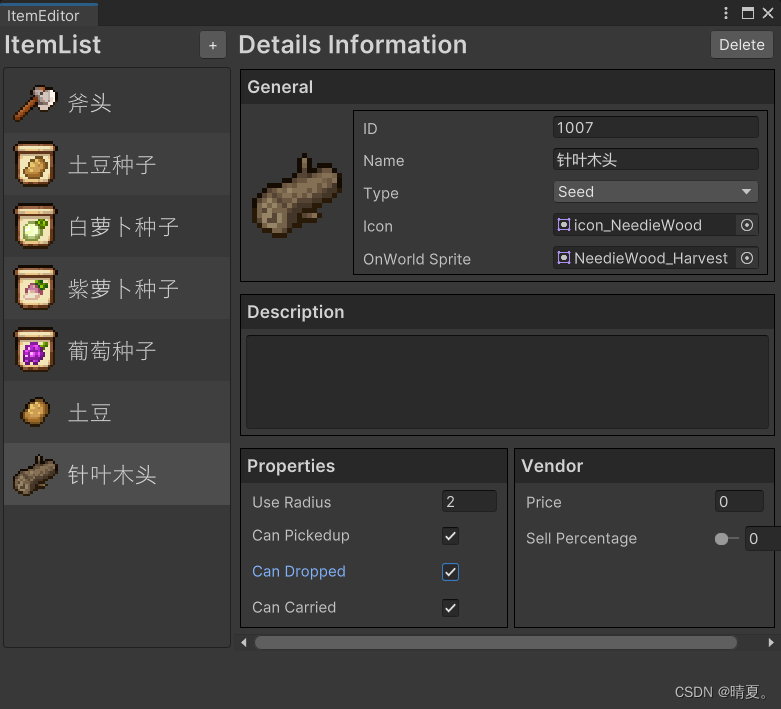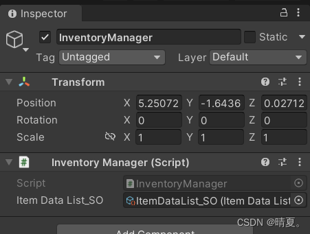 The logic of picking up items is as follows , Add a script for players to pick up items , When triggered trigger when , Get the... Of the object item Components , And then if there is item Components , Then call the database InventoryManager Medium AddItem function , Add items to your backpack .