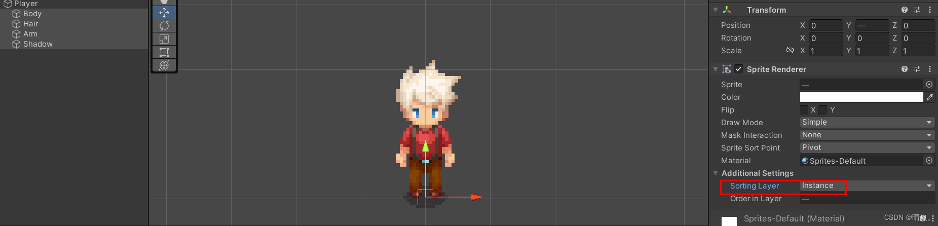 In order to prevent some parts of the character from blocking other objects , produce “ Separation ” The phenomenon of , Add one sorting group