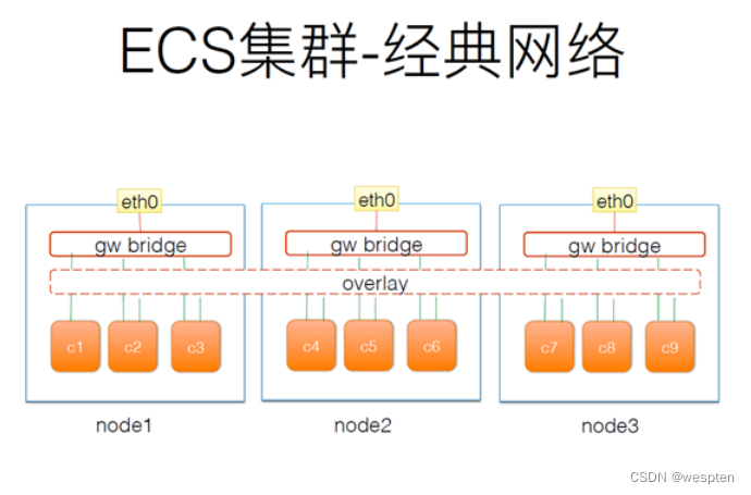 In Alibaba cloud ECS Above the cluster , The network architecture is like this , Communication between containers , Or through overlay drive , Its advantage is that it has relatively low requirements for infrastructure , So it only needs the interworking between hosts , Container to access the Internet , Or the container wants to expose the port to the external network through a gateway_bridge The bridge 、 A local driver , This is the port mapping for the container to access the Internet and the container .
