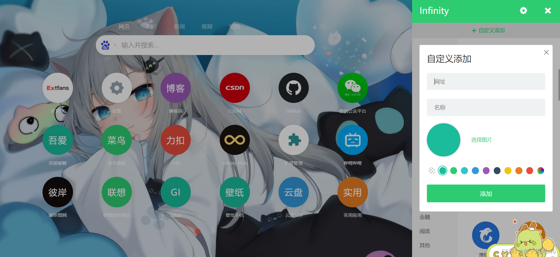 Infinity新标签页是一款谷歌浏览器中非常实用、极简洁的Chrome扩展程序,使用该插件可以重新定义Chrome的新标签页来实现快速拨号、邮件提醒、天气预报、笔记功能、待办事项、壁纸、历史记录管理等功能。