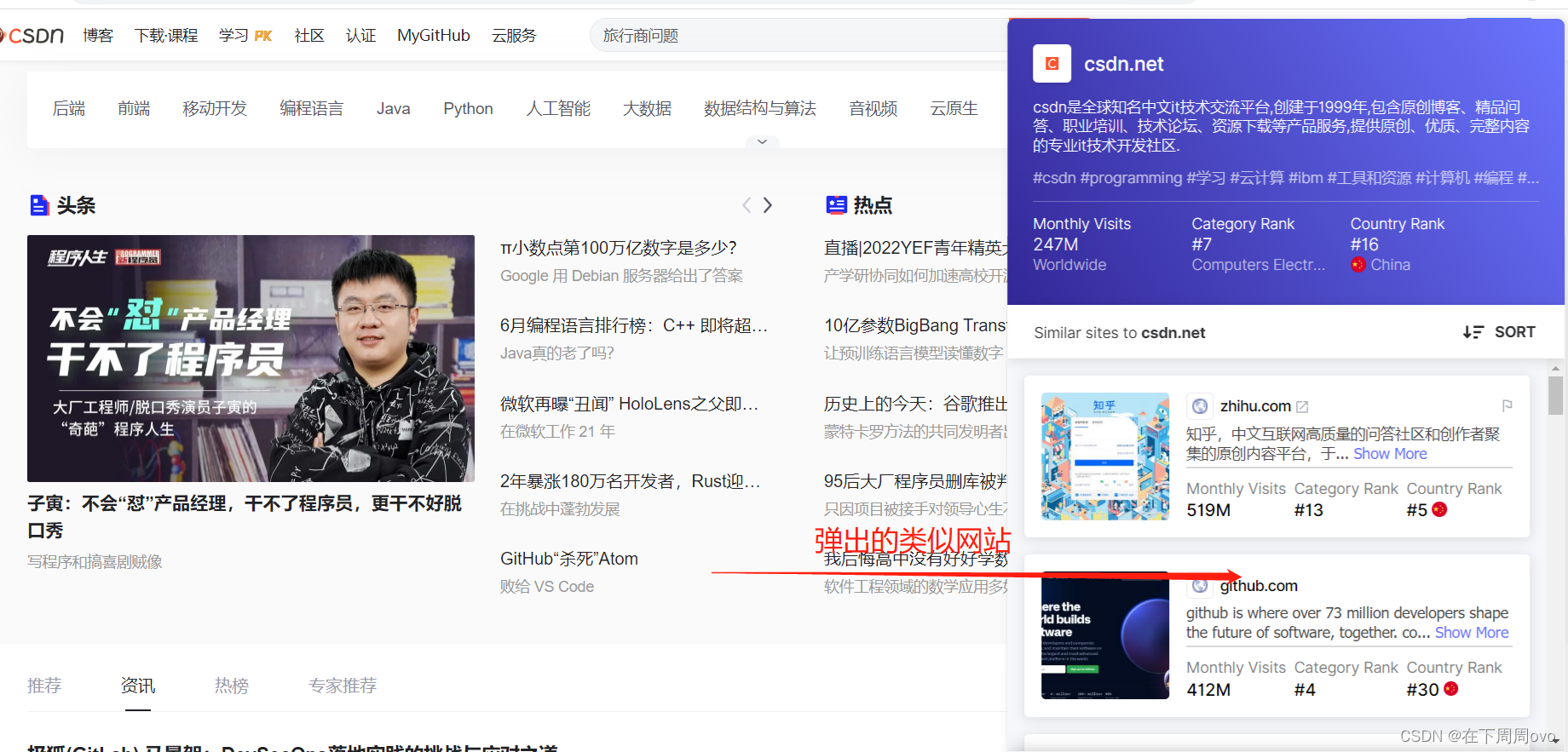比如我们搜索了CSDN点击该插件就会弹出类似网站比如GitHub