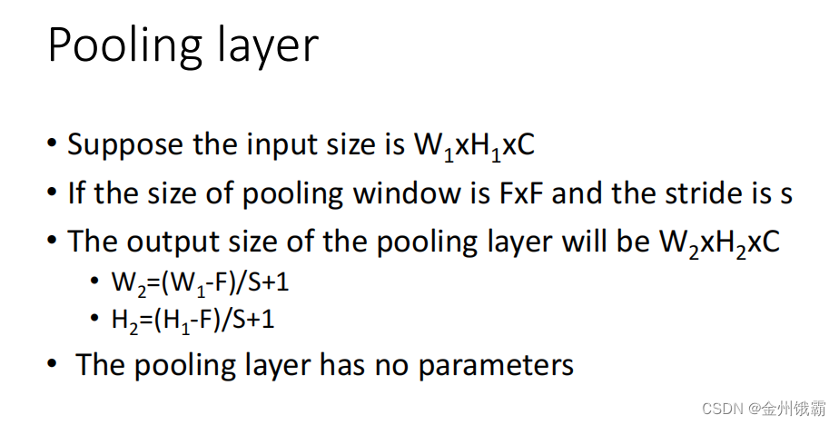 二、池化层输出大小的计算(这里没有padding,所以padding = 0)