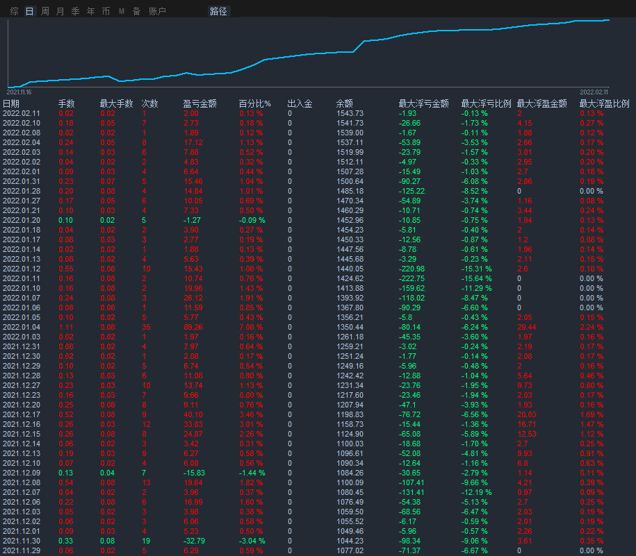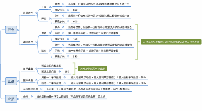 According to the deviation of the daily average as the billing condition . Open the first order and open more air , The number of deviation points of the preset step average , Add positions according to the number of points . When the first order has been issued , When the current purchase price is lower than the initial unit price by the preset step, the position will be increased , The number of positions opened in the previous order + Increasing the number of hands * Current number of orders opened . The current selling price is low 5 minute k Of 144 When the level moving average reaches the preset step size, it is empty , First order interference stop ( Floating loss value of the maximum loss sheet + Floating profit value of maximum profit sheet ) / Floating profit value of maximum profit sheet >30% When more than one single stop gain ( Floating loss value of the maximum loss sheet + Floating profit value of maximum profit sheet ) Floating profit value of maximum profit sheet >50% , Whether it's one or more single income stops , When the floating gain exceeds the preset stop gain value , The overall floating loss of the current variety reaches the preset value “ The amount of loss acceptable for a single product ” Post stop loss , No matter when one or more single stop gains , When the floating gain exceeds the preset stop gain value , All positions are closed as a whole