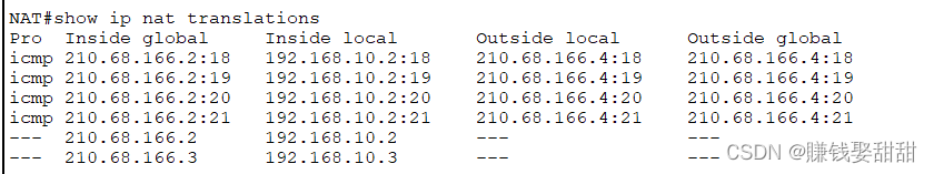 example : Make the above dynamic NAT Change the example of , All internal addresses are mapped to external addresses 210.68.166.5, At this time, we need to use port reuse NAT