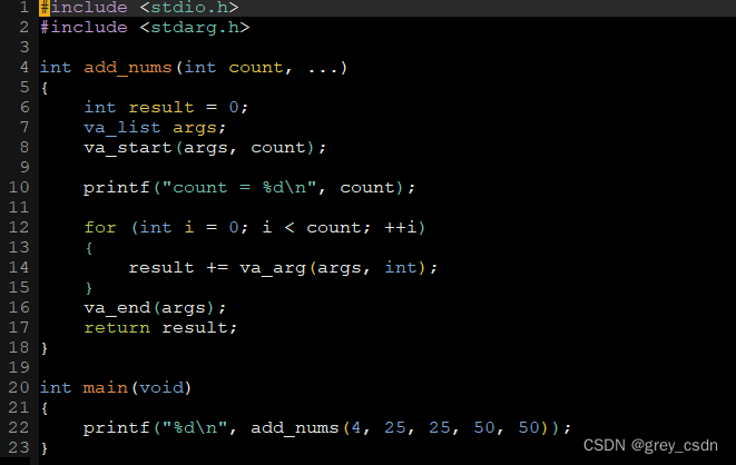 这个是上面代码编译运行的效果。从这个结果看,其实输入了5个参数最终程序只是识别到了4个。这4个,可以理解为是一个1 + 3的结果,而前面的第一个参数count则是决定了最终应该要取几个参数。也就说,这个参数的数目识别无法做到自动化或者智能化,只能够自己来做程序级别的判断。如此,继续前面的分析。