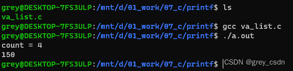 上面的这个例子,能够看得出来几个宏的简单使用情况。同时,还增加了一个va_arg的使用。先把这个代码编译运行一下。