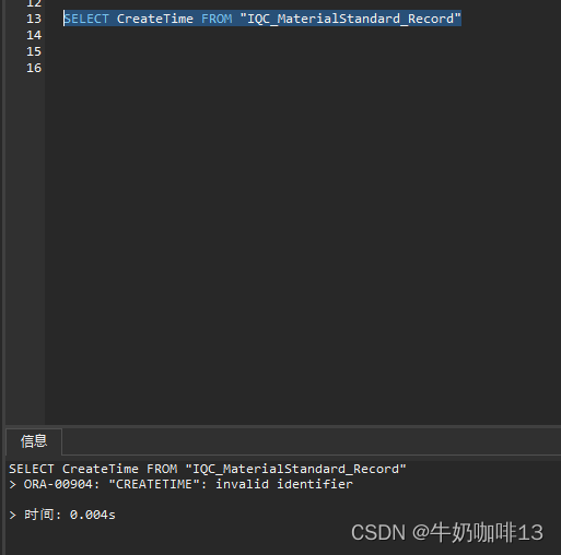 If we use sql Statements such as 【SELECT CreateTime FROM "IQC_MaterialStandard_Record"】, The following error will be reported :