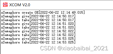 The running results of this example are as follows , It can be found from the time stamp printed ,Task02 Once the semaphore is sent ,Task03 A printout is made immediately , Same as the expected operation results :