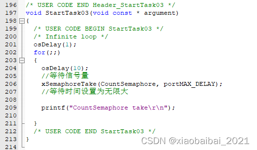 Task03 Waiting for semaphores in the , And delay for a short time , For easy observation of printed information :