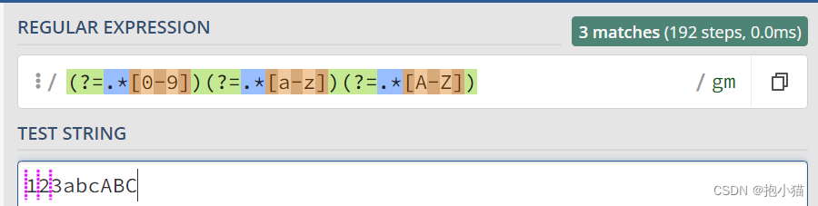 (?=.*[0-9])(?=.*[a-z])(?=.*[A-Z]):字符+数字+小写字母+大写字母