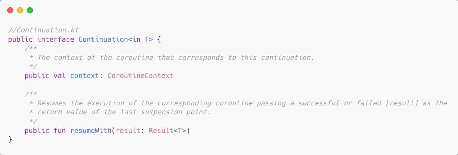 - Otherwise, call completion.resumeWith(outcome) And back to