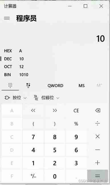 当前位置:网站首页>Call the computer calculator and use it to convert several base numbers