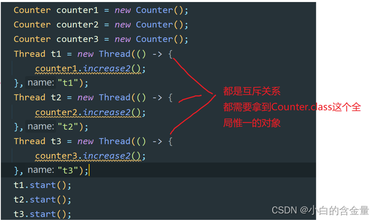 Let me give you an example which is not very appropriate , We can compare each thread to a person , Compare a locked code block to a toilet , If these threads need to go to the same toilet , So let's say you go to a thread first , Once inside, the thread will lock the toilet , During this period, other threads can't get in if they want to , This is the mutual exclusion between threads , Only when this thread comes out can it go in .