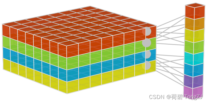 - Use matrix multiplication weight[..., r, c] × img[..., r, c], The result is shape by [8, ] Tensor , Represents the pixel 8 Values for channels ; If all pixels 8 The values of the channels are added , The convolution result can be obtained