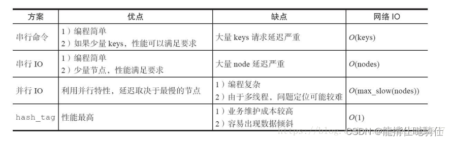 Here we assume that the command 、 The client connection has been optimized , Focus on reducing the number of network operations . Next we will combine Redis Cluster Four distributed batch operation modes are described in this paper .
