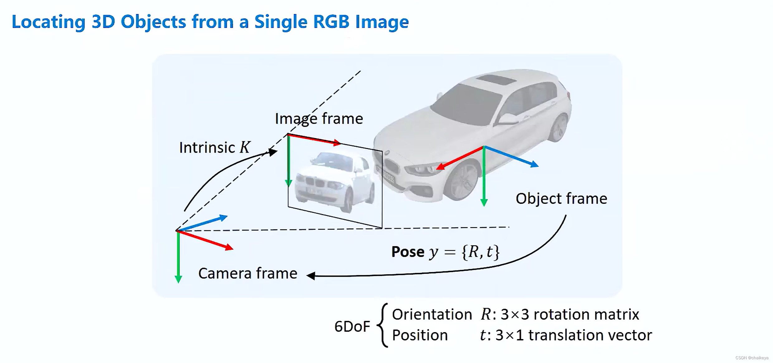 给定物体的投影Image frame,求解物体的坐标系Object frame到相机坐标系Camera frame的刚体变换。