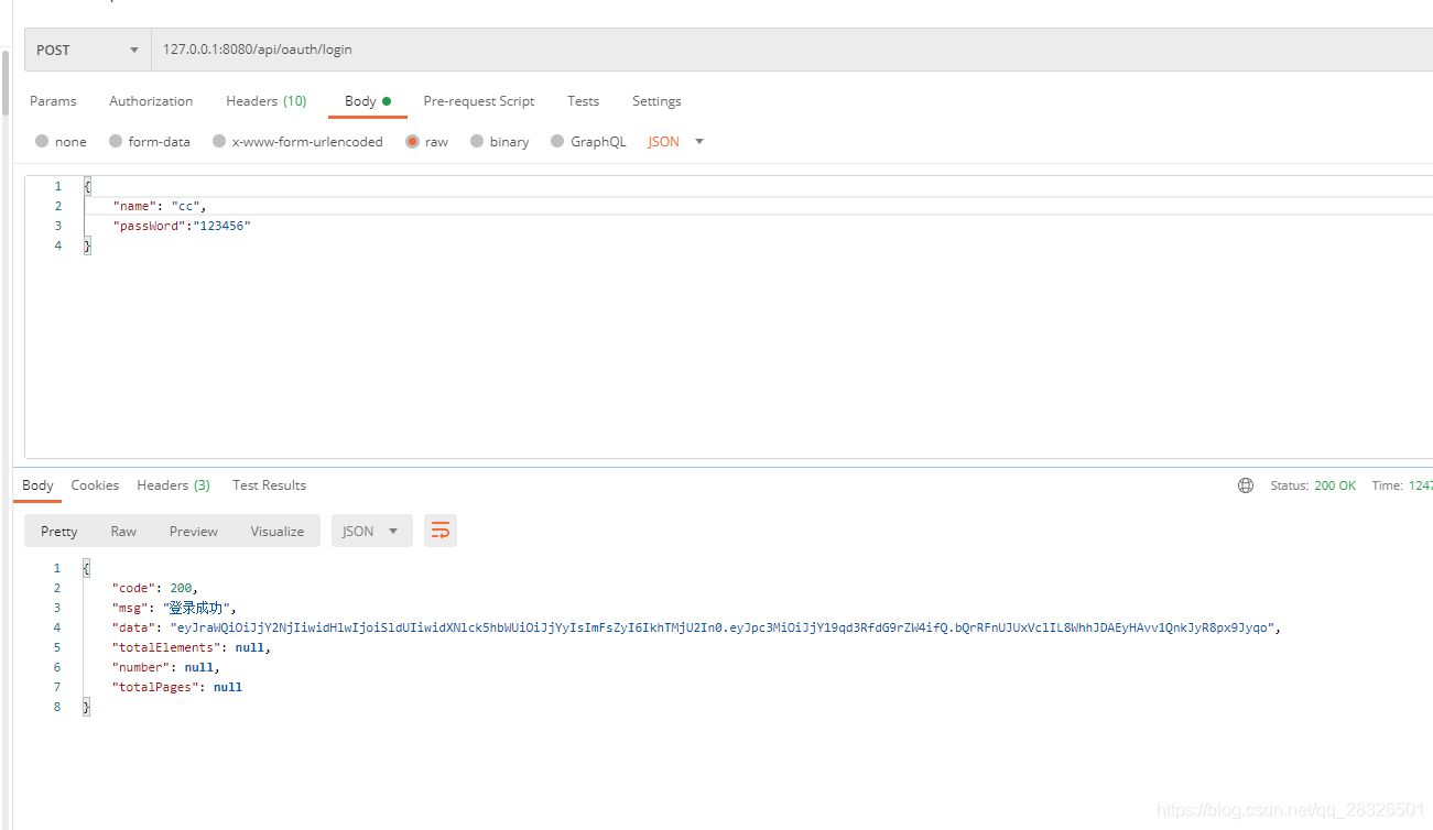 3、 Log in to get token
