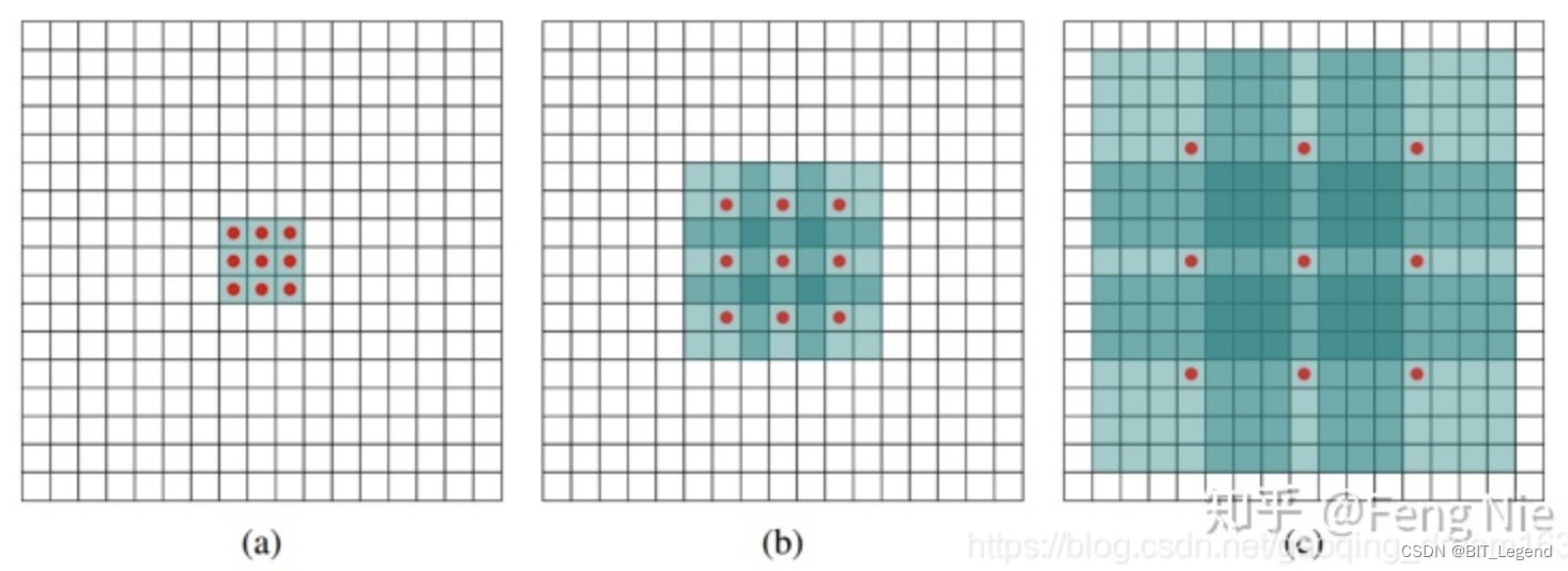 Hole convolution is to expand the convolution kernel while keeping the number of convolution kernel parameters unchanged , Equivalent to in convolution kernel padding Some values to increase the convolution kernel size , Under the same parameter quantity , The purpose of increasing receptive field . The schematic diagram is shown in the figure below