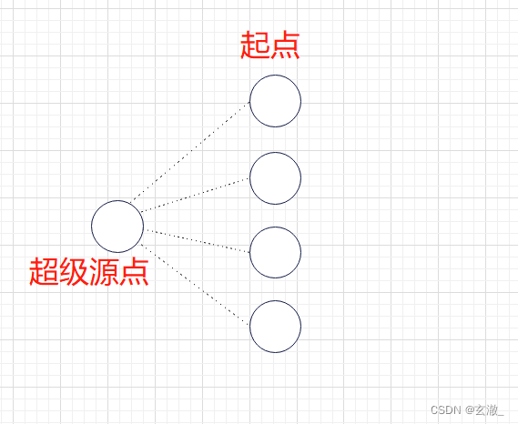 Build a Virtual source point , Connect all the starting points and this virtual source point to an edge as 0 The edge of , And then unfold Single source shortest path