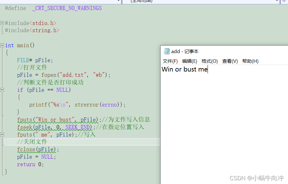 FILE* ptr = fopen("C:\\Users\\wstc2\\Desktopadd.txt", "a");// Open the file on the absolute path ( Additional )We know how to open files , But how do we input into the file / Input data ? Let's have a look !