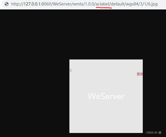 Accéder aux données de l'étiquette :http://127.0.0.1:8060/WeServer/wmts/1.0.0/aclabel/default/wgs84/3/1/6.jpg