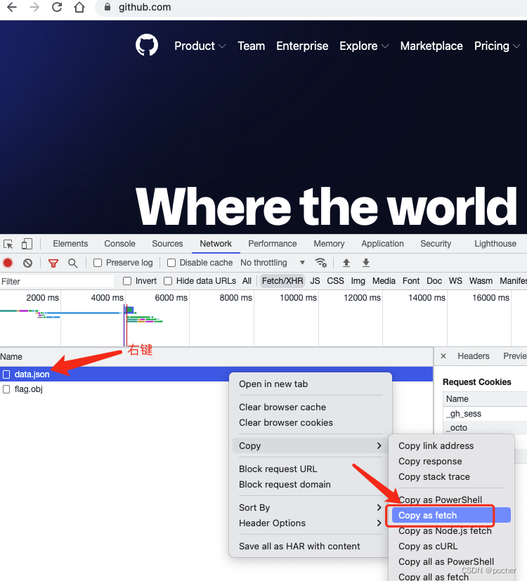 F12打开调试模式,在请求路径上右键,然后Copy as fetch,打开Console标签页,粘贴后回车,再回到刚才的Network标签页就可以看到刚才在console里发送的请求了,当然console里可以修改域名及请求的参数。
