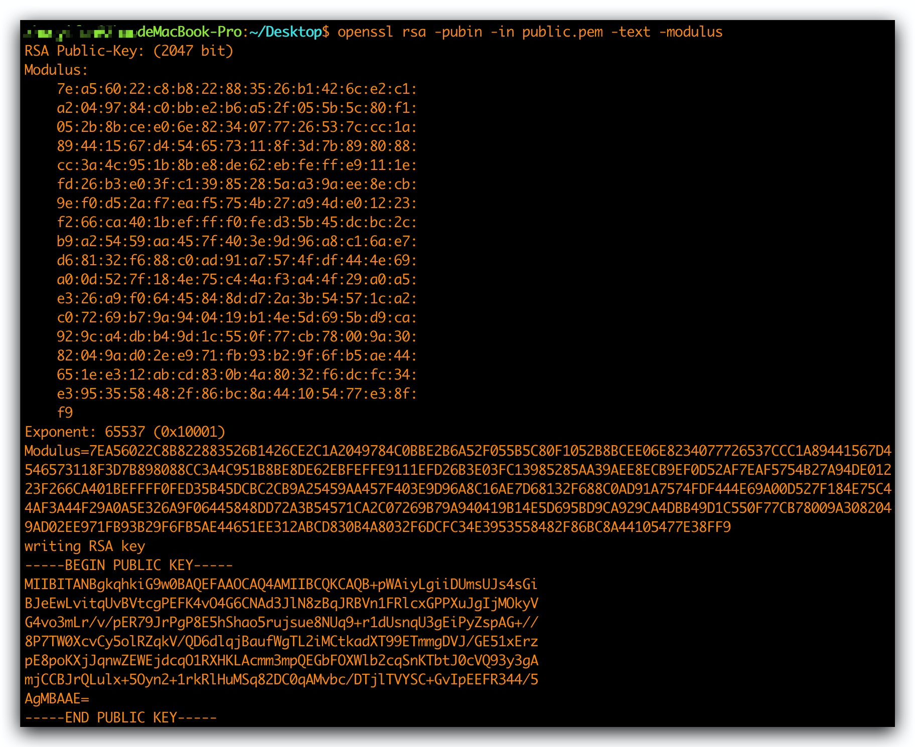 openssl rsa -pubin -in .pem公钥文件 -text -modulus