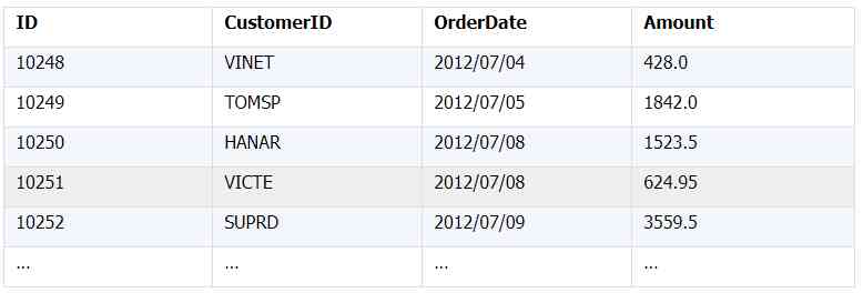【例 5】 根据订单表,顺序列出 2013 年每月的订单总数。订单表部分数据如下: