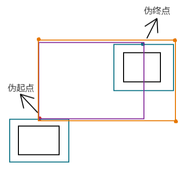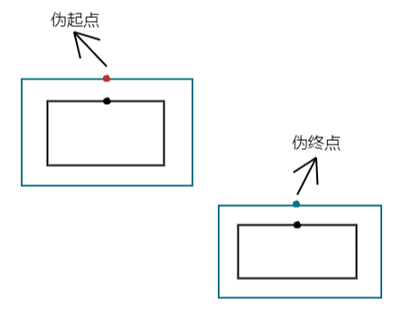 // 伪起点:经过起点且垂直于起点所在边的线与包围框线的交点
