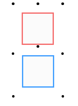 首先起点和终点两个点肯定是必不可少的,以下图为例,假设我们要从左上角的矩形顶部中间位置连接到右下角的矩形顶部中间位置: