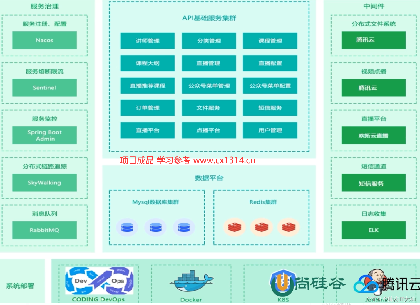 Technology stack involves mainstream SpringBoot+SpringCloud Microservice architecture , Tencent cloud file storage and video on demand services are comprehensively applied ;