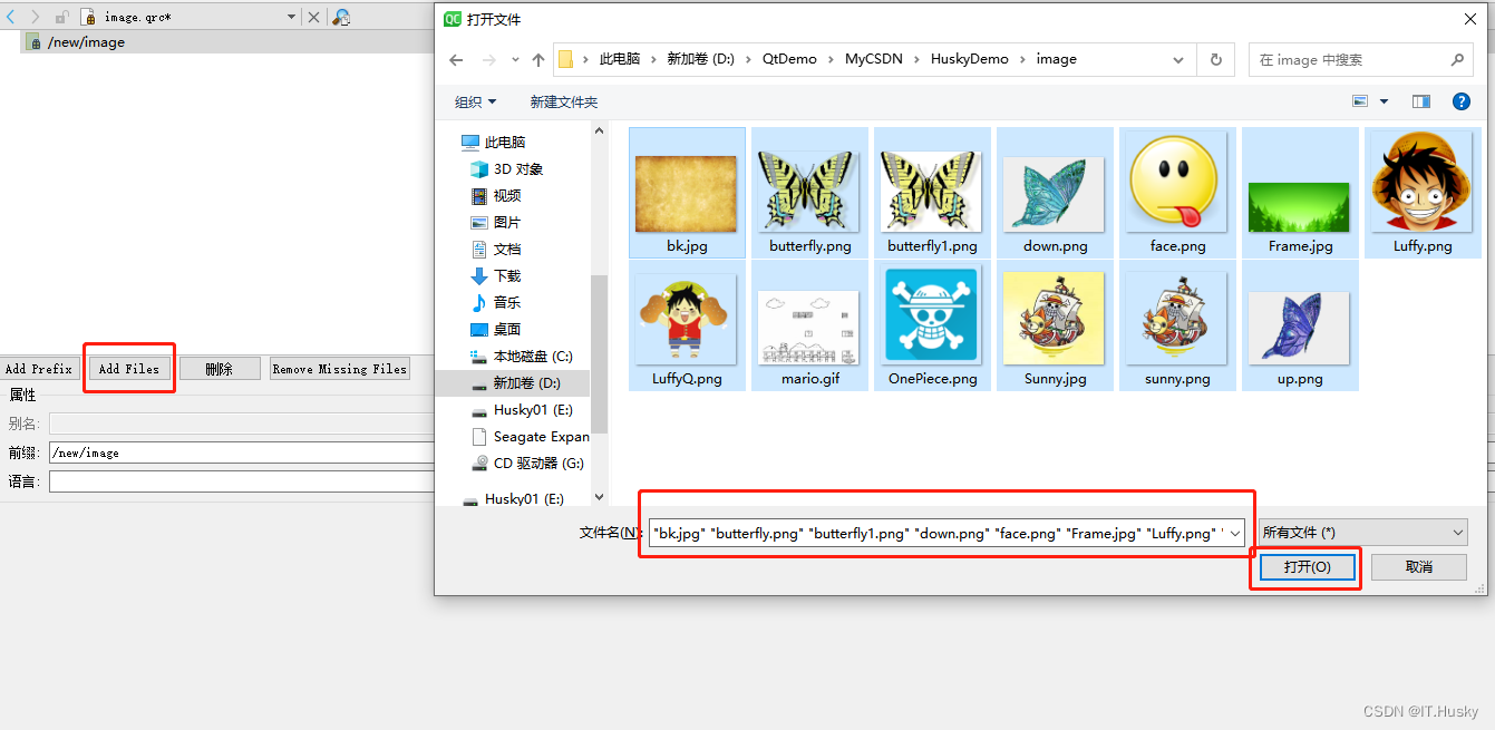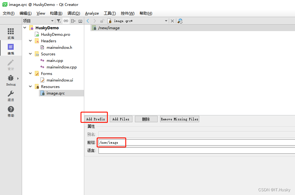 5、 Open the created .qrc file ( Here is image.qrc), Click on “Add Prefix”【 add prefix 】 And name the prefix .