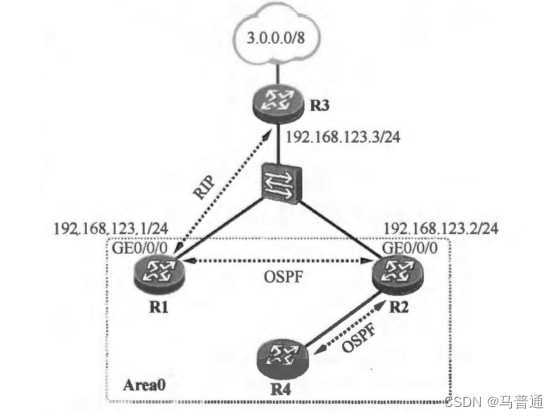 [r4-ospf-1]import-route rip 1 cost 10--- Modify the seed measure when republishing .
