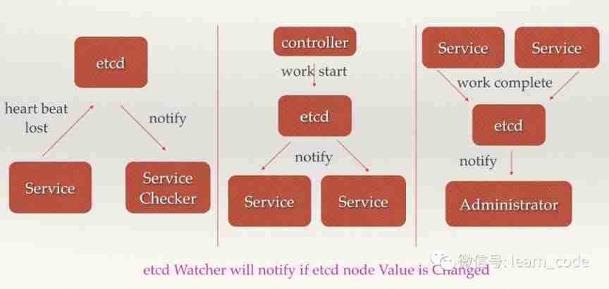 adopt etcd Perform low coupling heartbeat detection . The detection system and the detected system pass etcd A directory on the is associated rather than directly associated with , This can greatly reduce the coupling of the system .