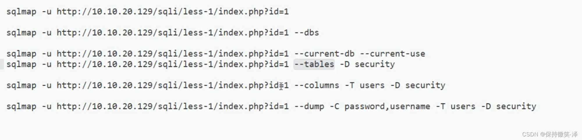 Here are some commonly used sqlmap Injection order