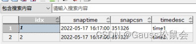 drop table if EXISTS tpcds.time_table; create table tpcds.time_table(idx integer, snaptime timestamp, snapcsn bigint, timeDesc character(100)) with(STORAGE_TYPE=USTORE); INSERT INTO tpcds.time_table select 1, now(),int8in(xidout(next_csn)), 'time1' from gs_get_next_xid_csn(); INSERT INTO tpcds.time_table select 2, now(),int8in(xidout(next_csn)), 'time2' from gs_get_next_xid_csn(); --出去接杯水再回来 INSERT INTO tpcds.time_table select 3, now(),int8in(xidout(next_csn)), 'time3' from gs_get_next_xid_csn(); --去拿了包薯片 INSERT INTO tpcds.time_table select 4, now(),int8in(xidout(next_csn)), 'time4' from gs_get_next_xid_csn(); select * from tpcds.time_table;