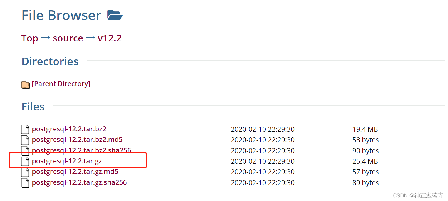 It is recommended to download the installation package on the official website : After selecting the version ( Here 12.2), choice tar.gz Format https://www.postgresql.org/ftp/source/