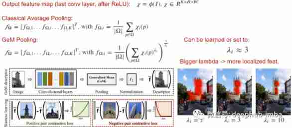 Generalized Mean(GeM) Is a simple pooling operation that can improve the quality of the output descriptor , It will lambda The normal form is applied to the average pooling operation . By increasing the lambda, Make the network focus on important parts of the image , This is very effective in some tasks .