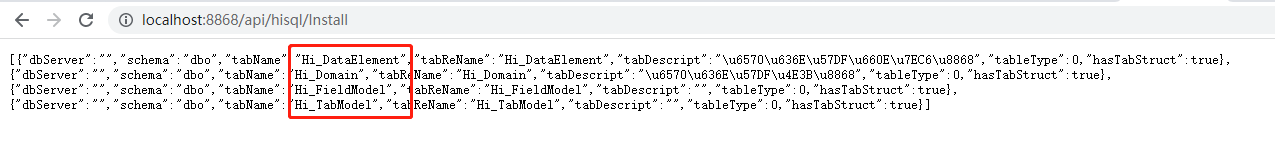 5、启动项目后,访问 项目地址 http://localhost:8868/api/hisql/Install 初始化hisql。