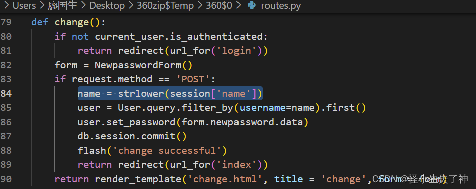 The author should want us to use flask session Forge it ( Of course, this is just my guess